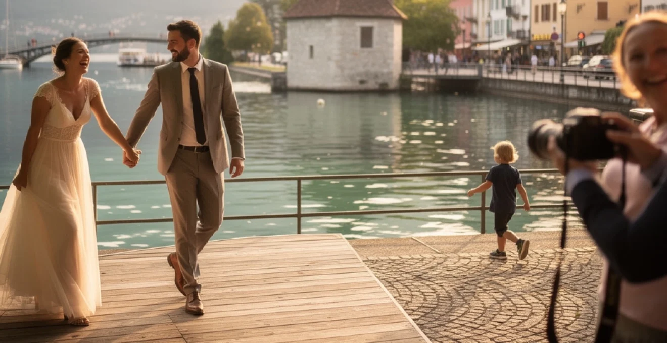 Les contraintes de circulation et de stationnement à Annecy, notamment les week-ends d’été, doivent également être anticipées. Le photographe peut proposer des solutions simples : se déplacer à pied dans la vieille ville, prévoir un véhicule dédié, ou planifier certaines séances (engagement, day-after) en dehors du jour J. Ces ajustements logistiques, parfois discrets, ont un impact direct sur la qualité des images : moins de précipitation, plus de disponibilité émotionnelle.